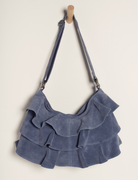Frilly and femme, this spacious shoulder bag features suede fabrication, a ruffle front, and secure zip pockets for all your essentials.