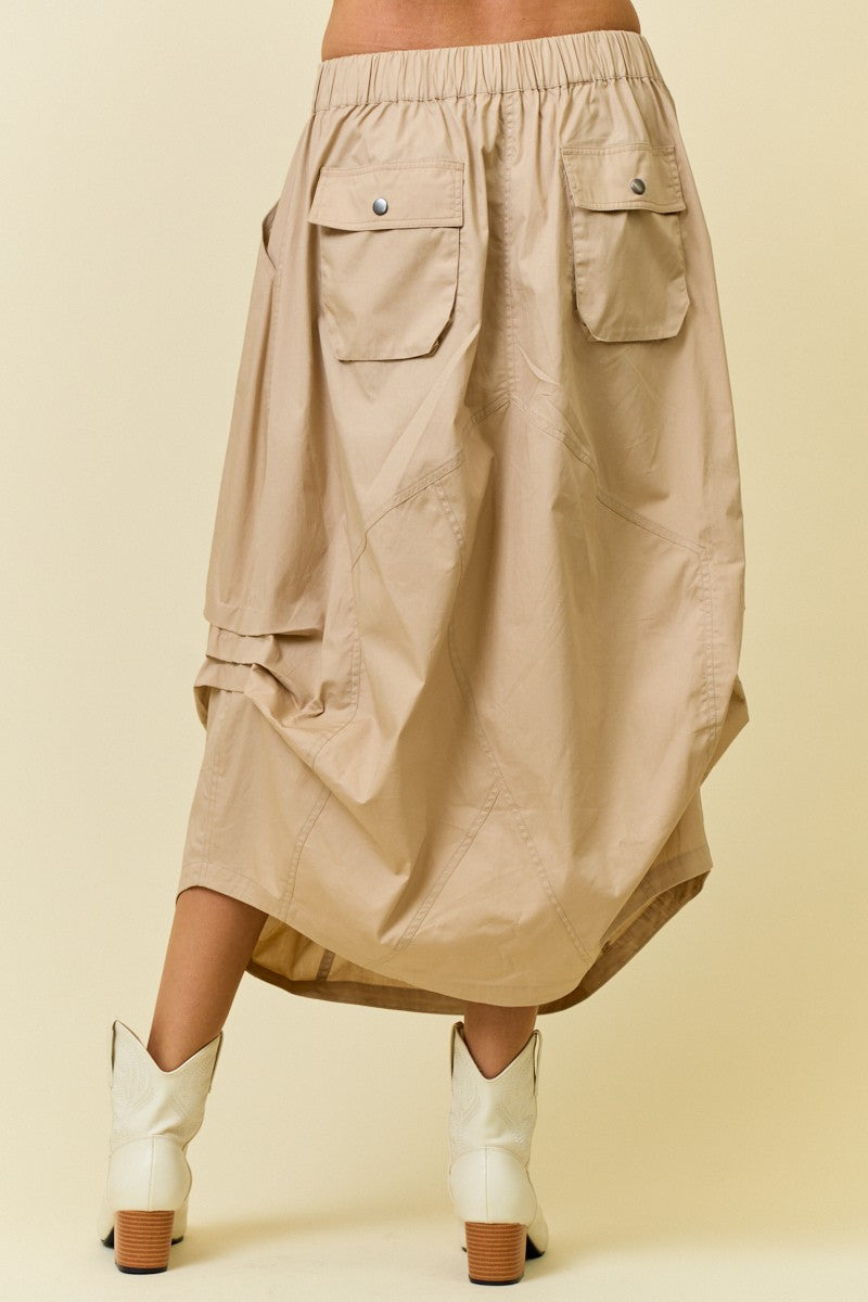 Doe & Rae Side Tuck Detail Midi Skirt - Beige