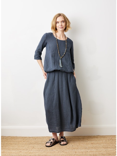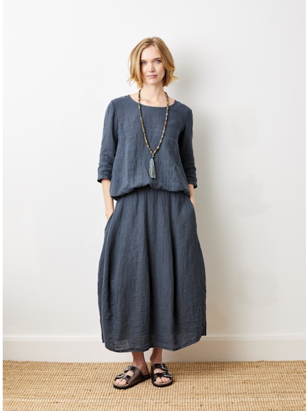 Effortlessly chic and undeniably fun, the Solene Linen Bubble Shape Skirt brings architectural flair to your everyday wardrobe. Crafted from breathable linen, this charcoal beauty features a distinctive bubble silhouette that adds movement and personality to any outfit. Perfect for warm-weather dressing, it pairs seamlessly with simple tees, crop tops, or flowing blouses. The structured shape keeps things interesting while the natural fabric keeps you cool and comfortable. A modern staple that proves style doesn't have to be serious. 100% Linen.