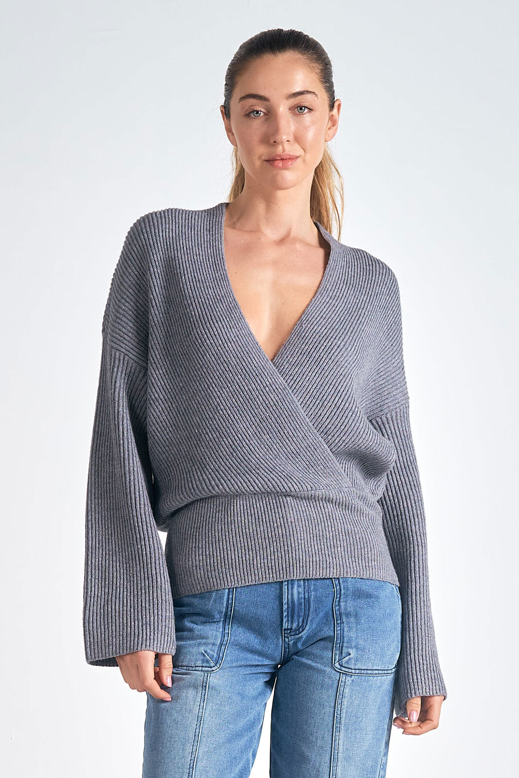 Elan LS Crossover Sweater - Charcoal