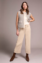 Make a statement in these effortlessly chic palazzo pants, designed with a high-rise waist for a flattering silhouette and dramatic wide-leg flow. A double-button closure and classic fly add a tailored touch, while functional front and back pockets balance style with everyday versatility. Crafted from stretch denim, they move with you for all-day comfort.