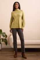 Tribal Long Puff Sleeve Mock Neck Sweater - Leek