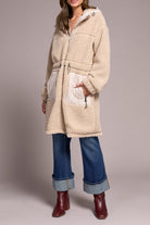 Tribal Sherpa Zip Front Coat w/ Hood & Lining
