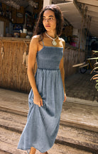 Soft washed chambray gives this square-neck maxi dress a laid-back feel, while the smocked bodice and adjustable o-ring spaghetti straps ensure a flattering, perfect fit. The flowy skirt and lined bodice make it your go-to for sunny day plans.