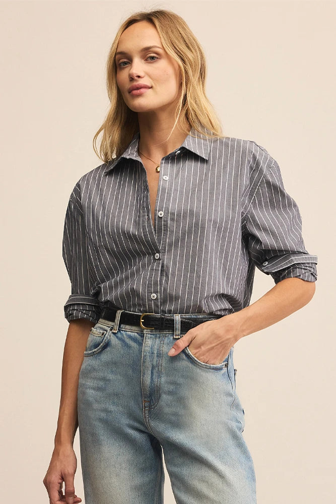 Z SUPPLY Seaport Striped Poplin Shirt - Washed Grey