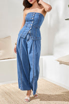 Elevate your everyday rotation with the Tribal Brooke Pleated Wide-Leg Denim. These aren't just your average jeans; they are a masterclass in effortless sophistication. Featuring bold, tailored pleats and a relaxed, wide-leg silhouette, these pants offer a premium flowy drape that moves as gracefully as you do. Designed for the modern woman who refuses to choose between comfort and edge, the Brooke bridges the gap between high-fashion trousers and casual denim.