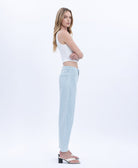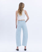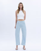 These super high rise striped barrel jeans bring a fun twist to your denim collection. Crafted from comfort stretch fabric, they hug your curves while giving you freedom to move. The cropped length and finished hem add a playful edge, perfect for showing off your favorite shoes.