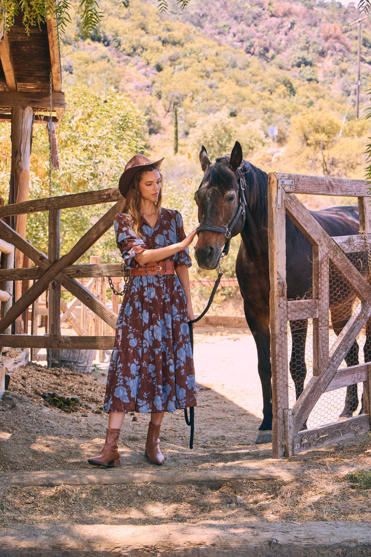 In February Dreamy Jacquard Floral Midi Dress - Redwood/Lt Blue
