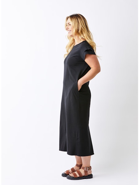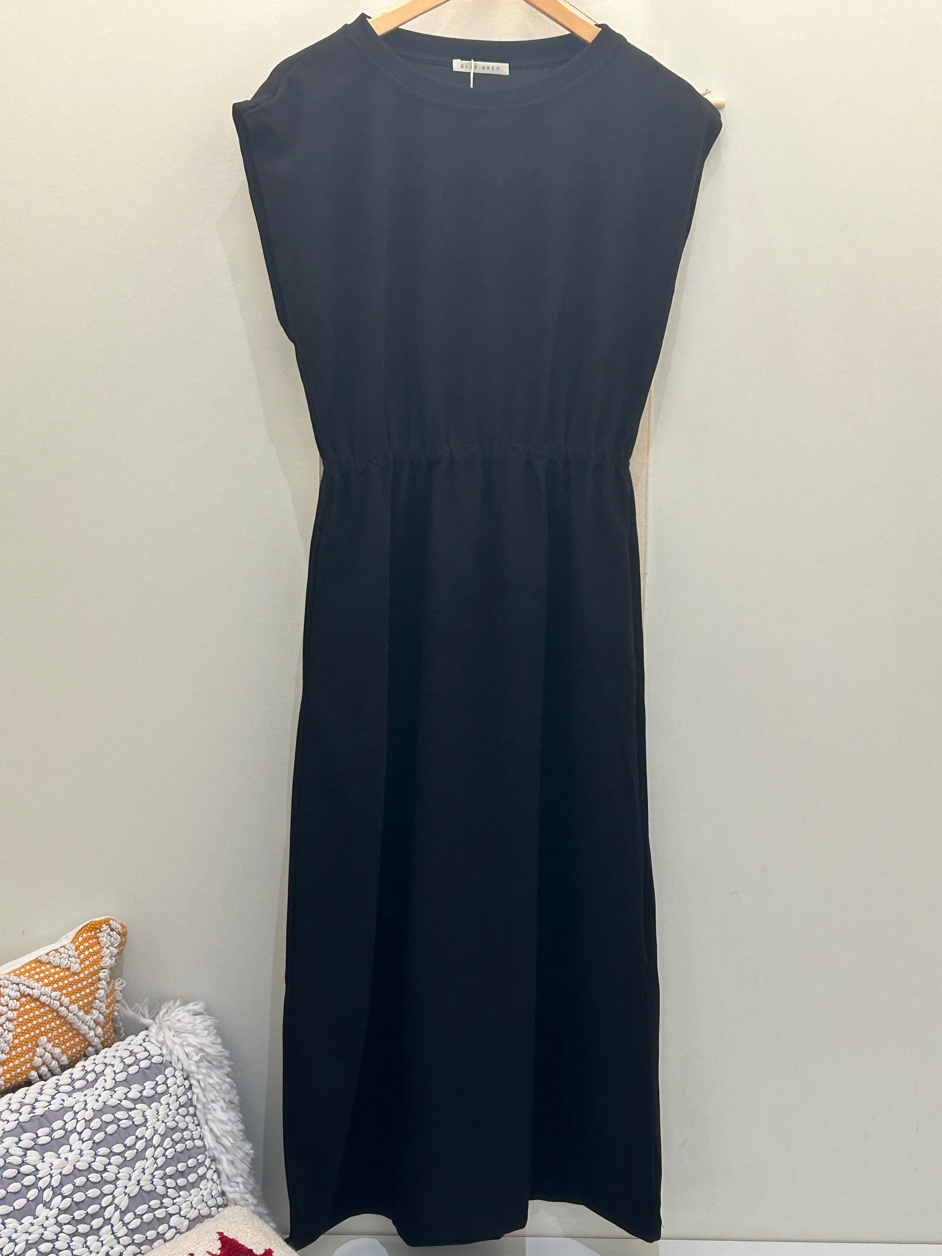 Elastic Waist Casual Maxi Sheath Dress - Black