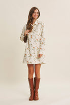 Mineral-washed A-line mini dress with a vintage floral print. Features a half button-down front, collared neckline, bust pockets, and side pockets. Comfortable cotton fabric with a flattering relaxed fit-easy to style with boots or sneakers for fall. Features - Mineral-washed - Victorian floral - A-line mini dress - Half button-down - Long-sleeves - Side pockets - Collared neckline - Bust pockets Size + Fit Model is 5'9.5" and wearing a size Small
