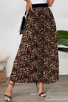 Turn heads this season with the NINEXIS Leopard Print Pleated Skirt. Its playful leopard pattern and flowing pleats add movement and attitude, perfect for layering through chilly autumn and winter days. Pair it with boots and cozy knits to unleash your wild side with style and comfort. 100% polyester PLEASE NOTE FOR FIT: This is ankle-length maxi skirt.