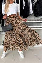 Step out in style with the NINEXIS Leopard Print Swing Skirt in black and brown. This mid-length skirt features a lively leopard print that adds a fun pop to your autumn wardrobe. Made from 100% polyester, it offers a comfortable, flowy fit that moves with you. Perfect for pairing with boots or sneakers, this swing skirt brings playful charm to any outfit.