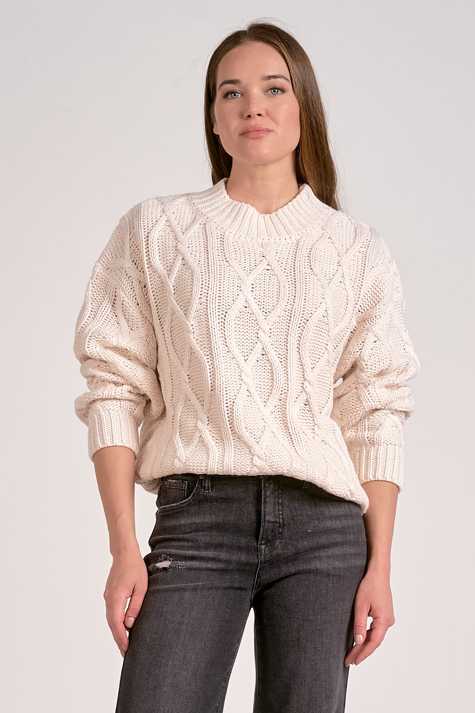 With its long sleeves and cable knit design, this sweater will keep you warm and stylish all season long. Wrap yourself in comfort and style with this cozy Elan Sweater!