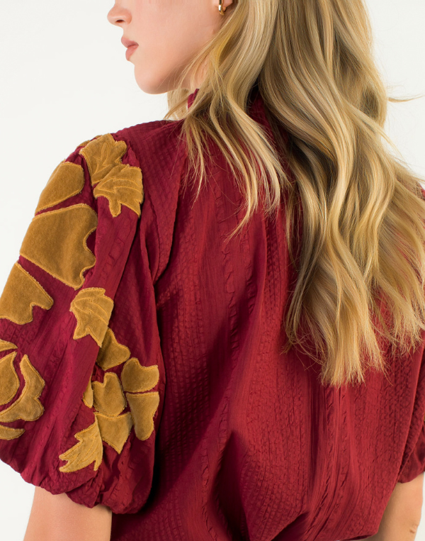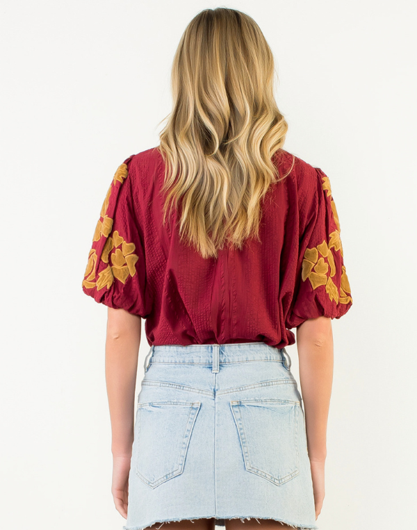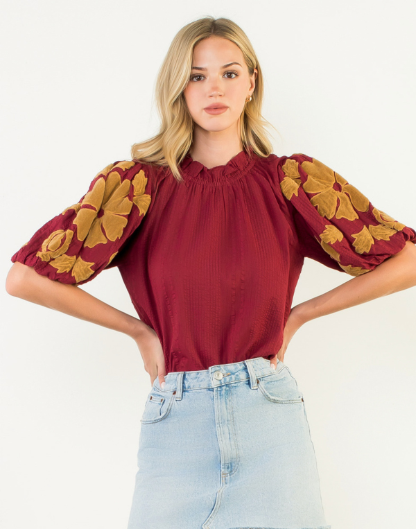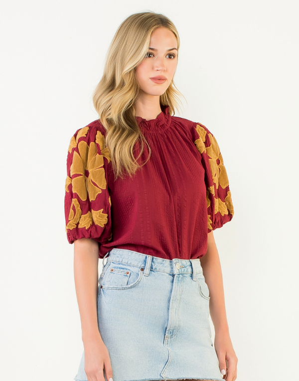 THML Dramatic Puff Sleeve Top - Maroon