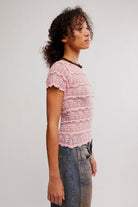 Free People Angelina Lace Tee - Blushing Coral