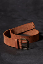Features: Medium width, leather fabrication, metal buckle, defined holes throughout