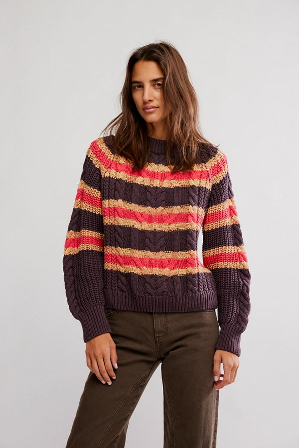 A new take on a forever classic, this staple sweater is featured in a chunky knit fabrication with timeless cable detailing throughout for an added special touch.