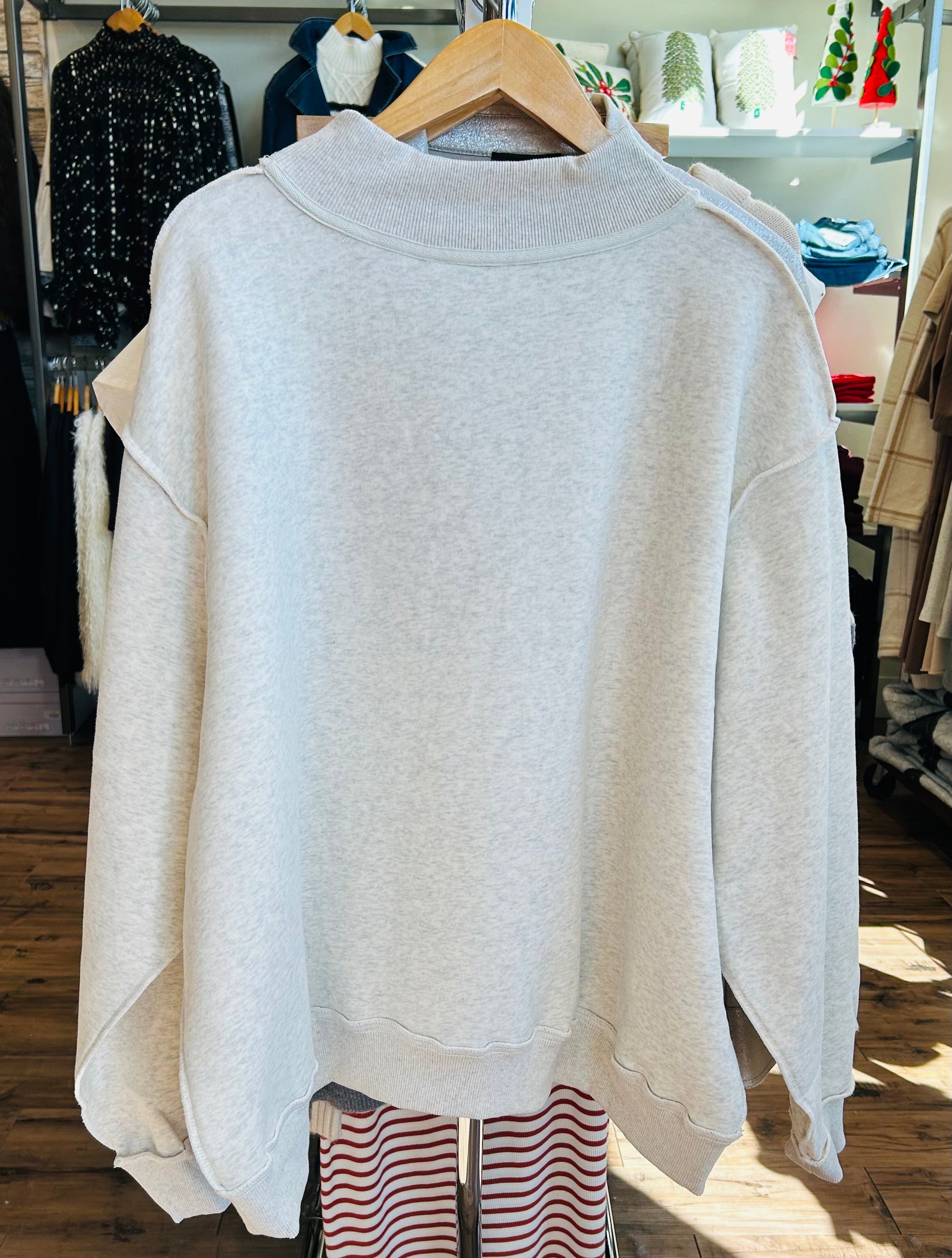 Bucketlist Merry Embroidered Mock Neck Sweatshirt - H. Grey/Red