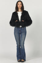 Rosalind round neck fringe jacket designed to add a touch of flair to your outfit. This long sleeve button front jacket offers an effortless blend of style and comfort. Perfect for versatile layering options for elevating everyday looks, a timeless staple for any lifestyle.