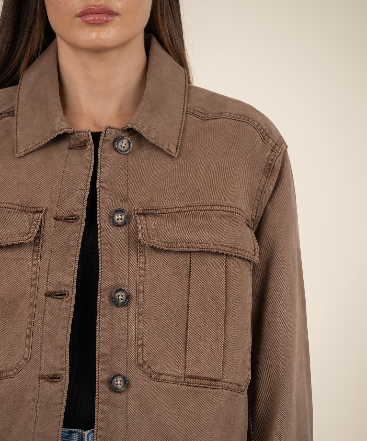 Oversized pockets at the chest lend on-trend workwear-inspired style to this cotton-rich jacket cut in a cool boxy silhouette.