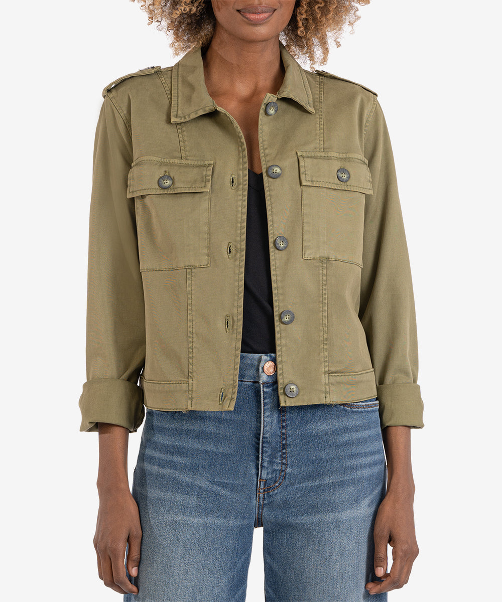 - A trucker style jacket crafted in a beautiful neutral color that goes with everything. Our Rosalyn jacket can be easily paired with your favorite denim.