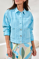 Tribal® Back Pleat Long Sleeve Button Front Jacket – Aqua Sky