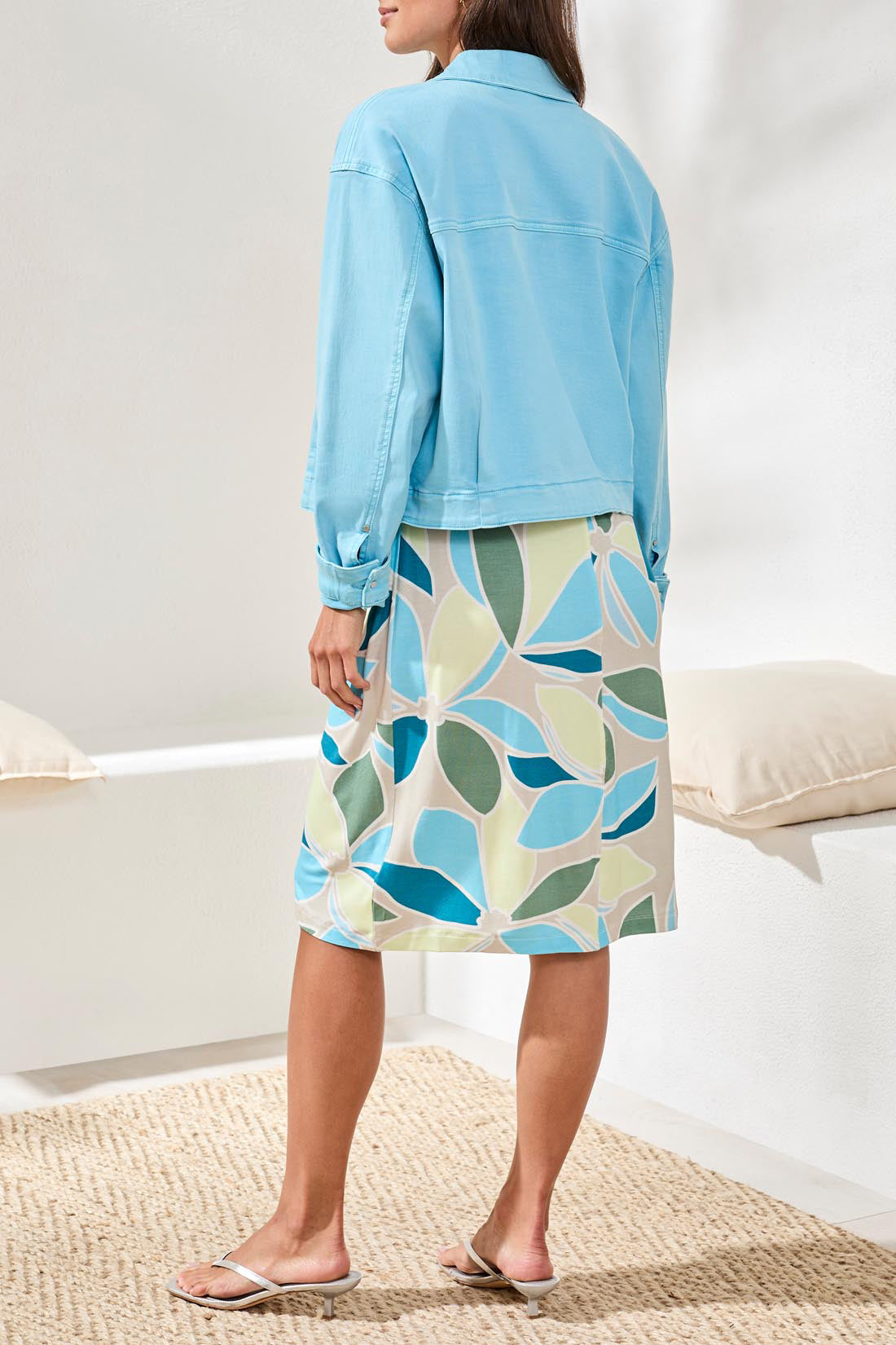 Refresh your seasonal layers with the Tribal® Back Pleat Jacket in stunning Aqua Sky. Expertly crafted from a premium cotton-stretch blend, this long-sleeve button-front essential combines a structured silhouette with unique back pleating for maximum movement and dimension. Whether styled with casual denim or a polished dress, this vibrant, breathable outer layer transitions effortlessly from day to night, making it the ultimate versatile wardrobe staple.