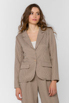 This houndstooth blazer offers a tailored look with its long sleeves, front button closure, and flap pockets. Crafted from a medium-weight fabric with a soft, fluid relaxed drape.