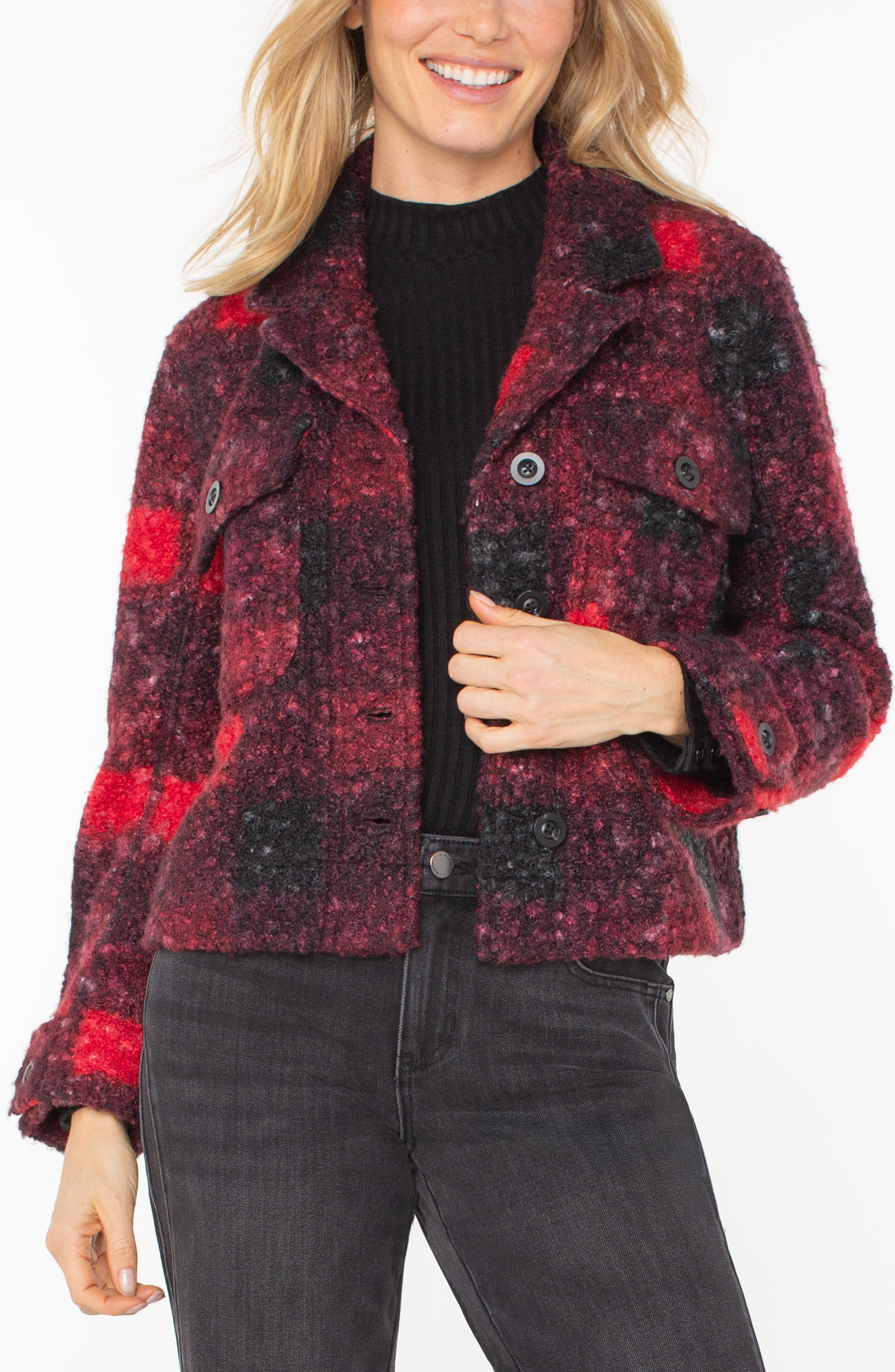 Liverpool Collarless Jacket w/ Frayed Edges - Red Multi Boucle
