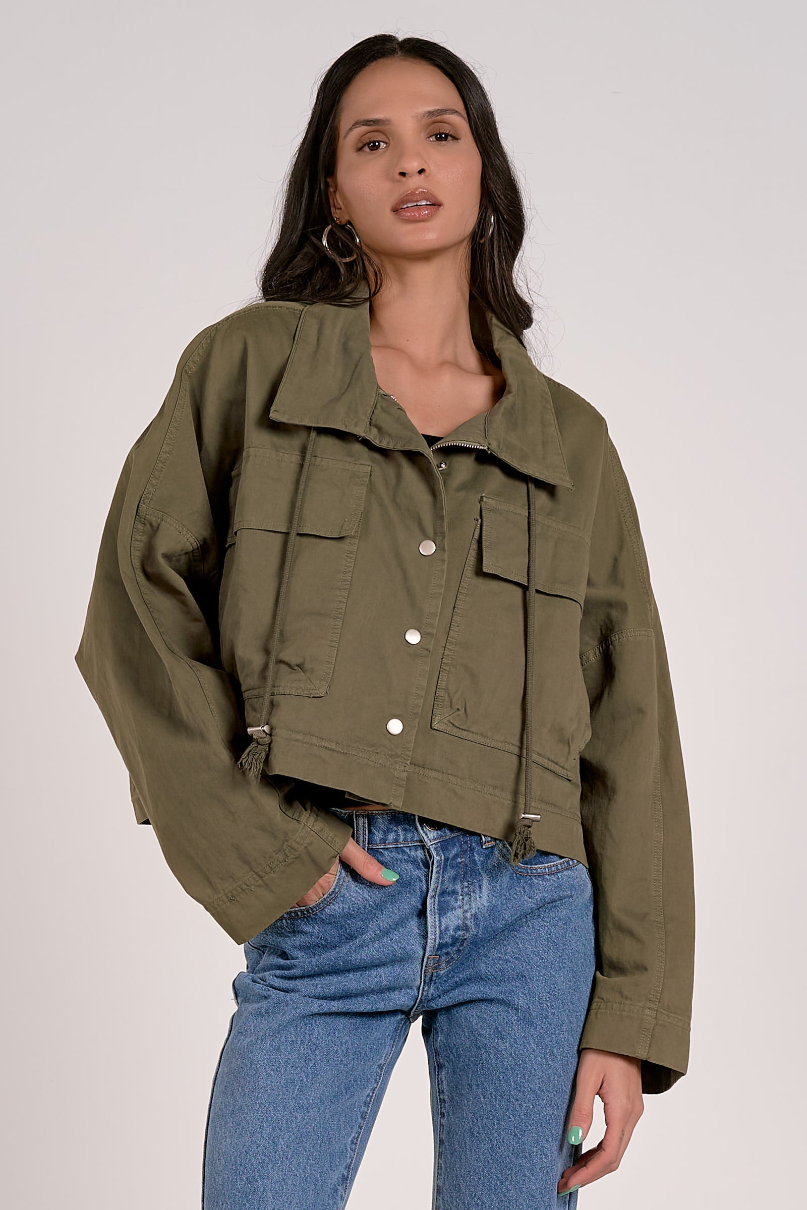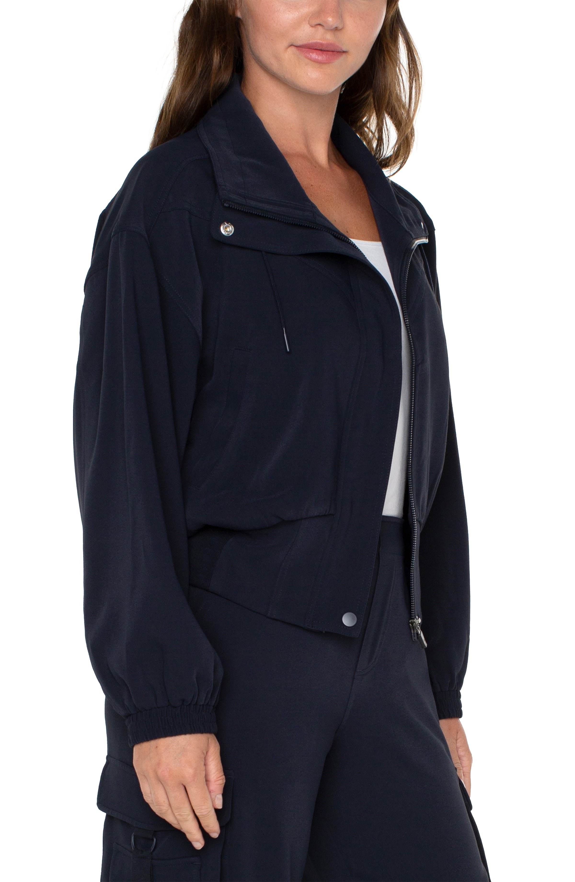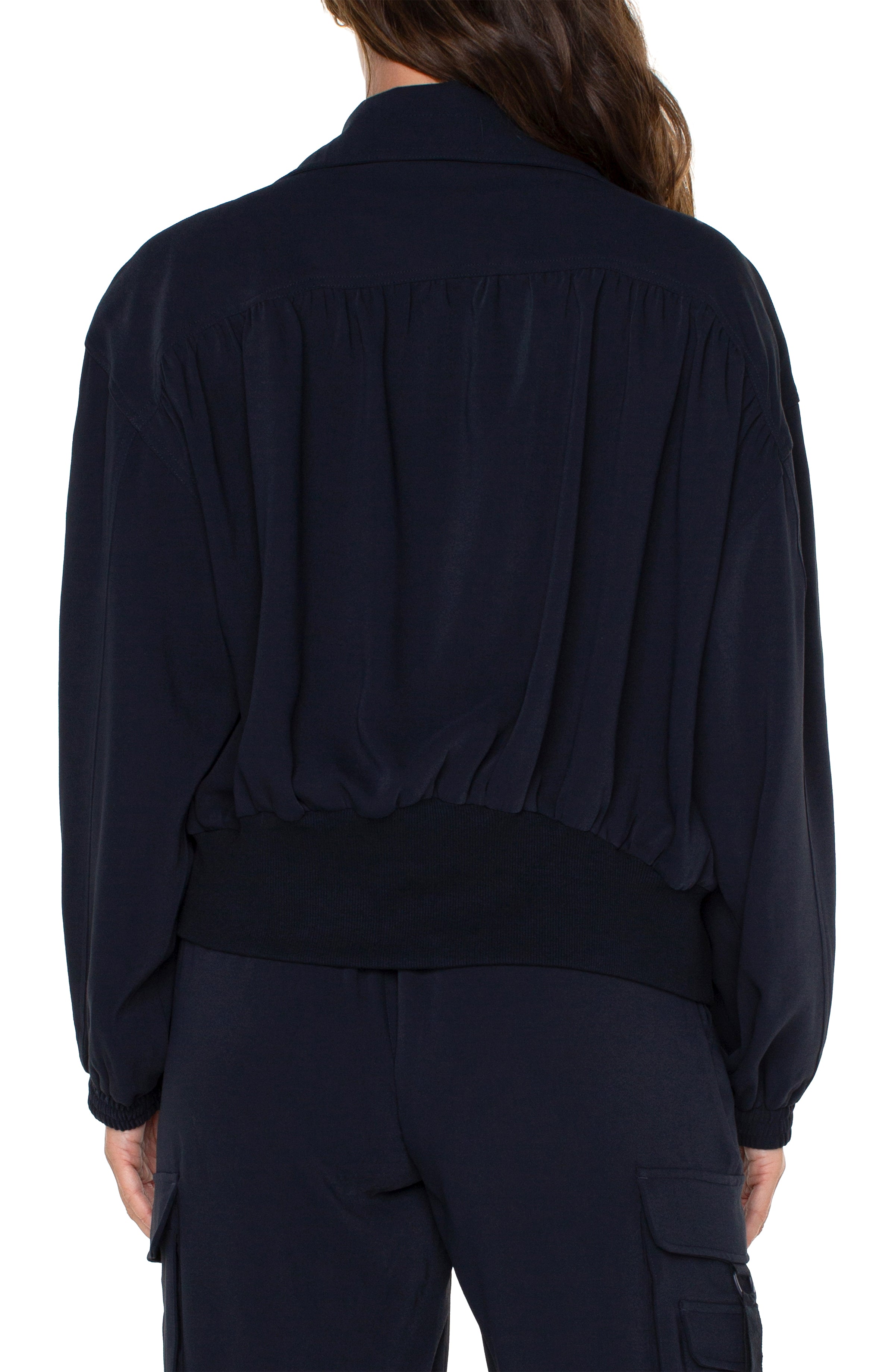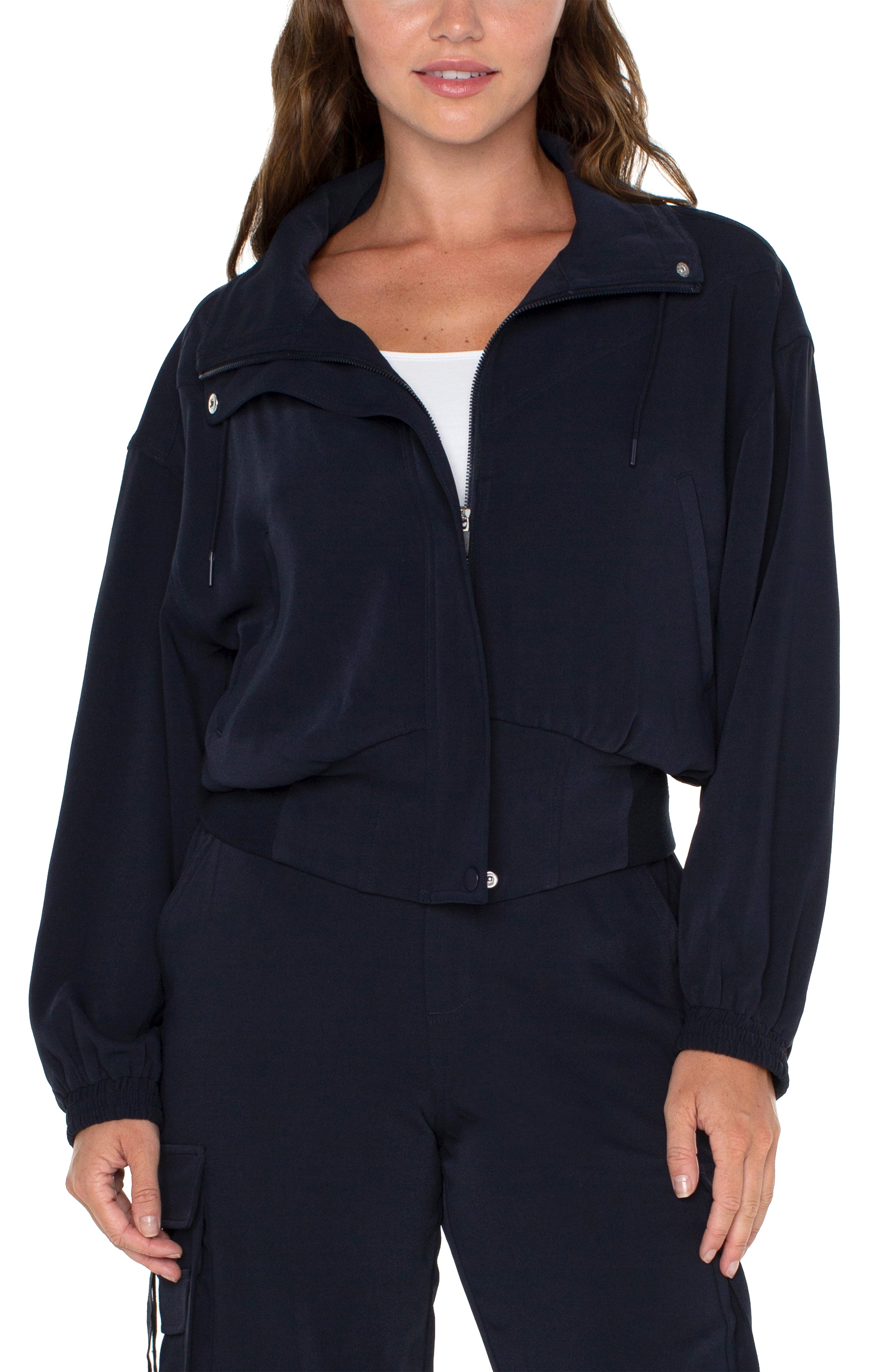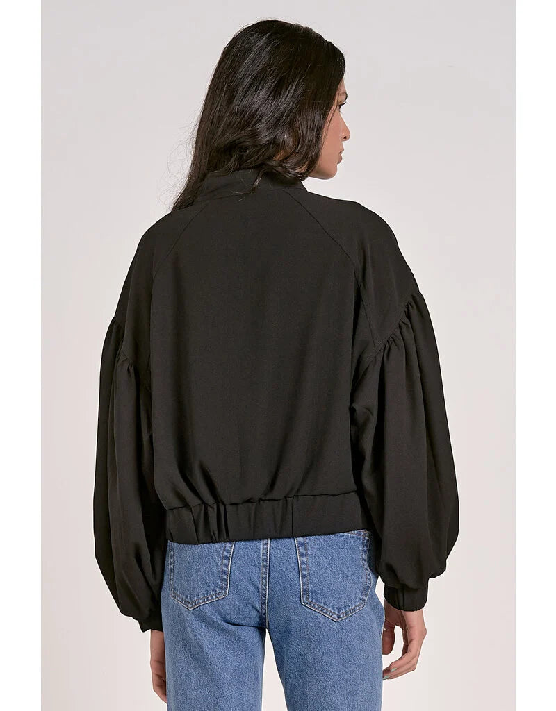 Elan Balloon Sleeve Zip Up Jacket-Black