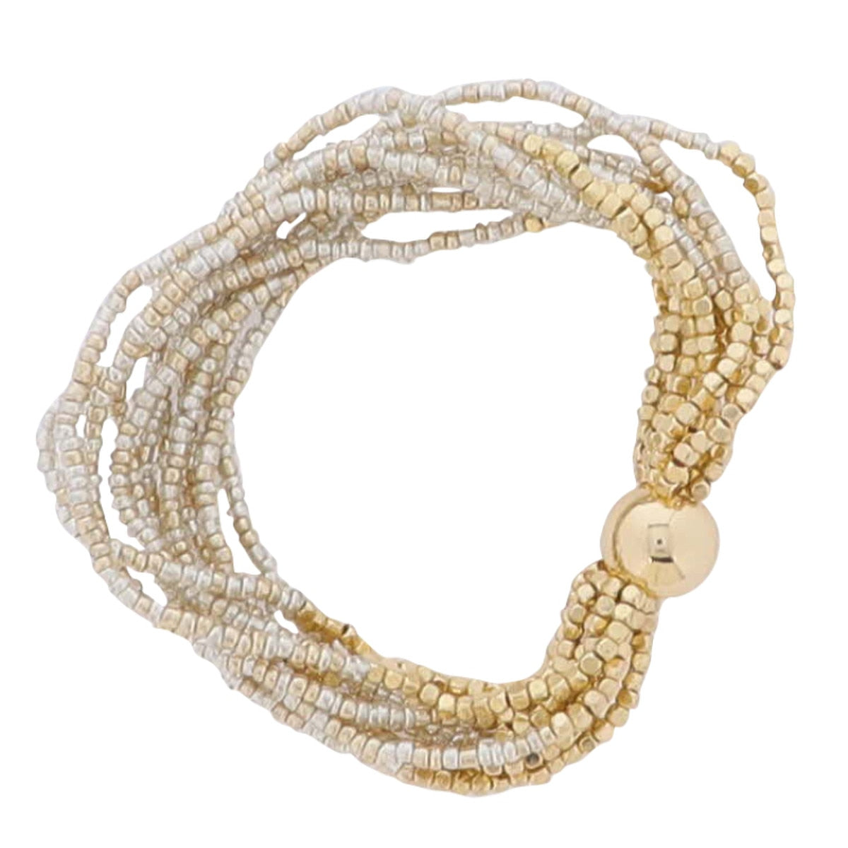 Gold & Silver Seed Beaded Multi Strand Bracelet
