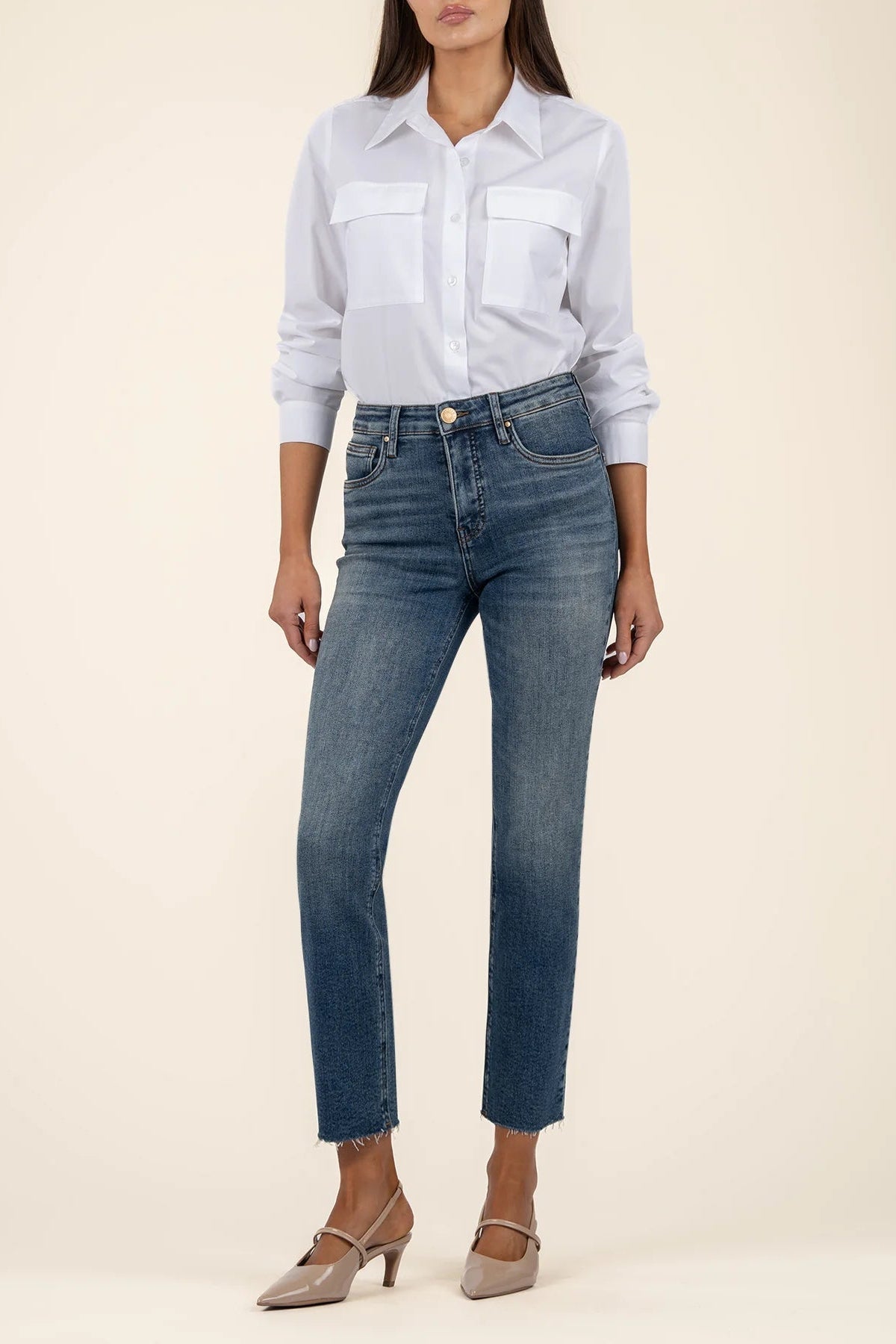 KUT Reese HR Fab Ab Ankle Straight Raw Hem - Ecru