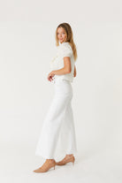 Crafted in a stretch white cotton denim, these Hudson Wide Leg jeans feature a flattering high rise, fitted through hip, and relaxed wide leg for a subtle statement. Pair with boots and a statement top for a stylish look, or keep it effortless with a white tee and trainers. Made for comfort and easy styling.