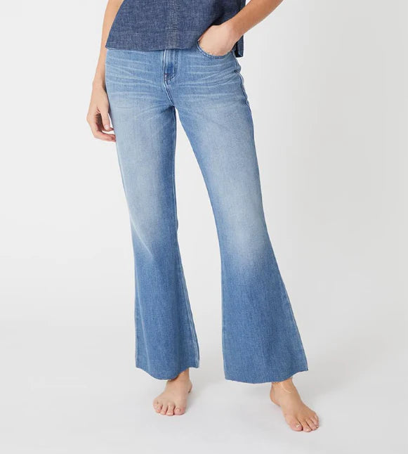 If you have shoes to show off...Claudia flare is the jean for you. These are mid rise slim fit jeans with an easy raw hem cropped bootcut leg. They are crafted in an unbelievably soft 4-way stretch denim design for lasting comfort and hold.