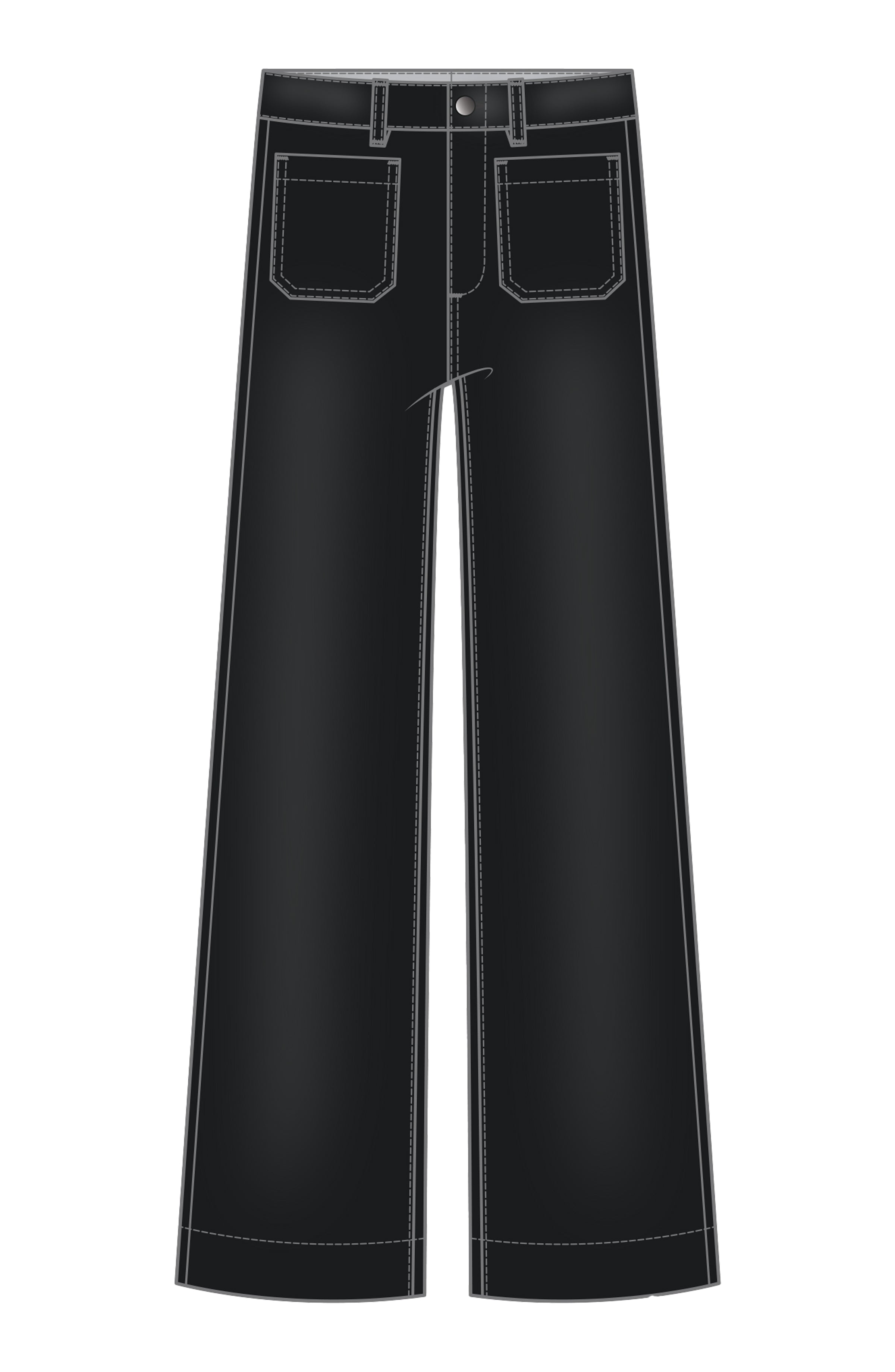 Liverpool Crop Wide Leg w/ Patch Pockets - Black Coated