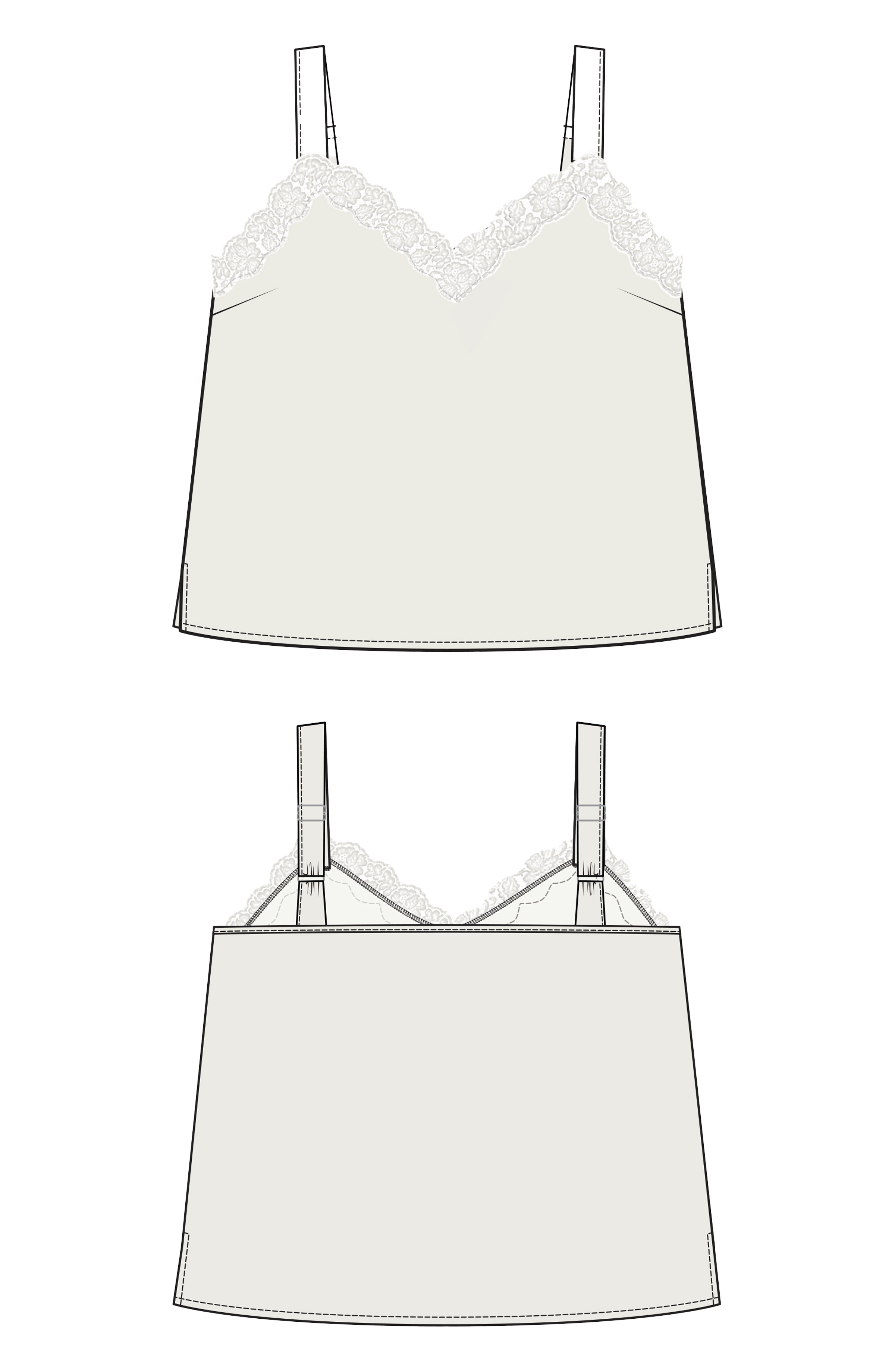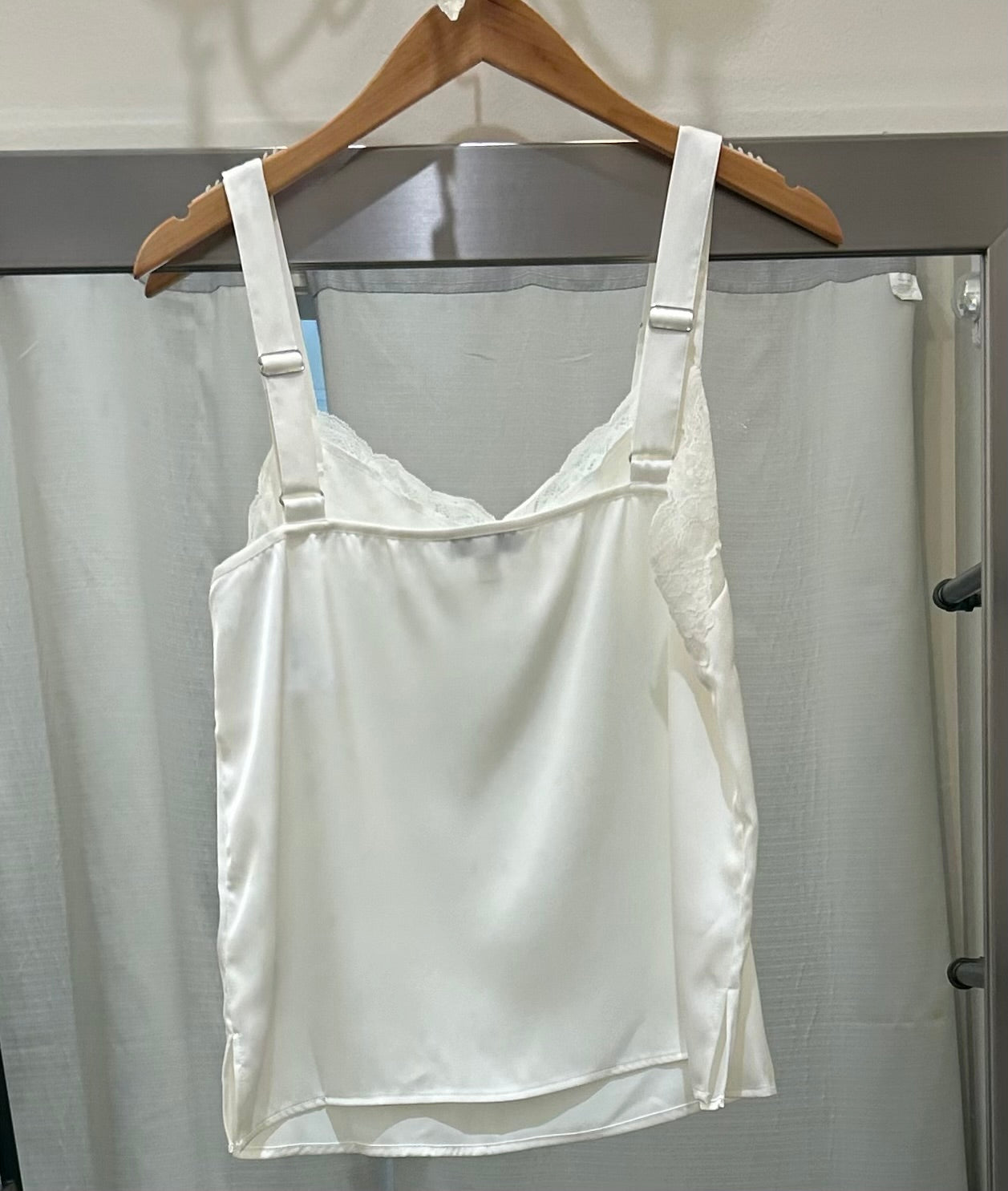 Liverpool Woven Tank w/ Lace Trim - Whipped Cream