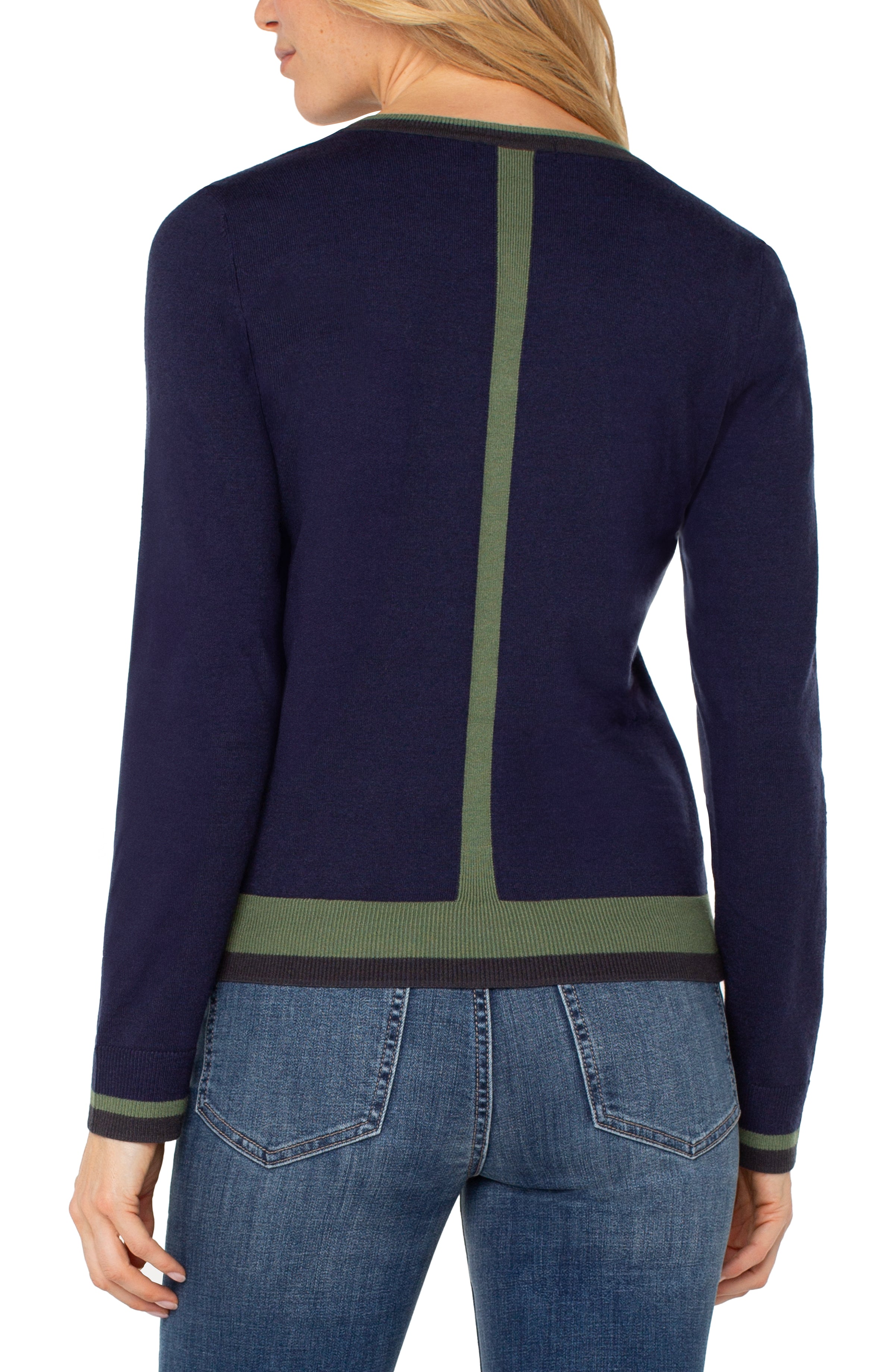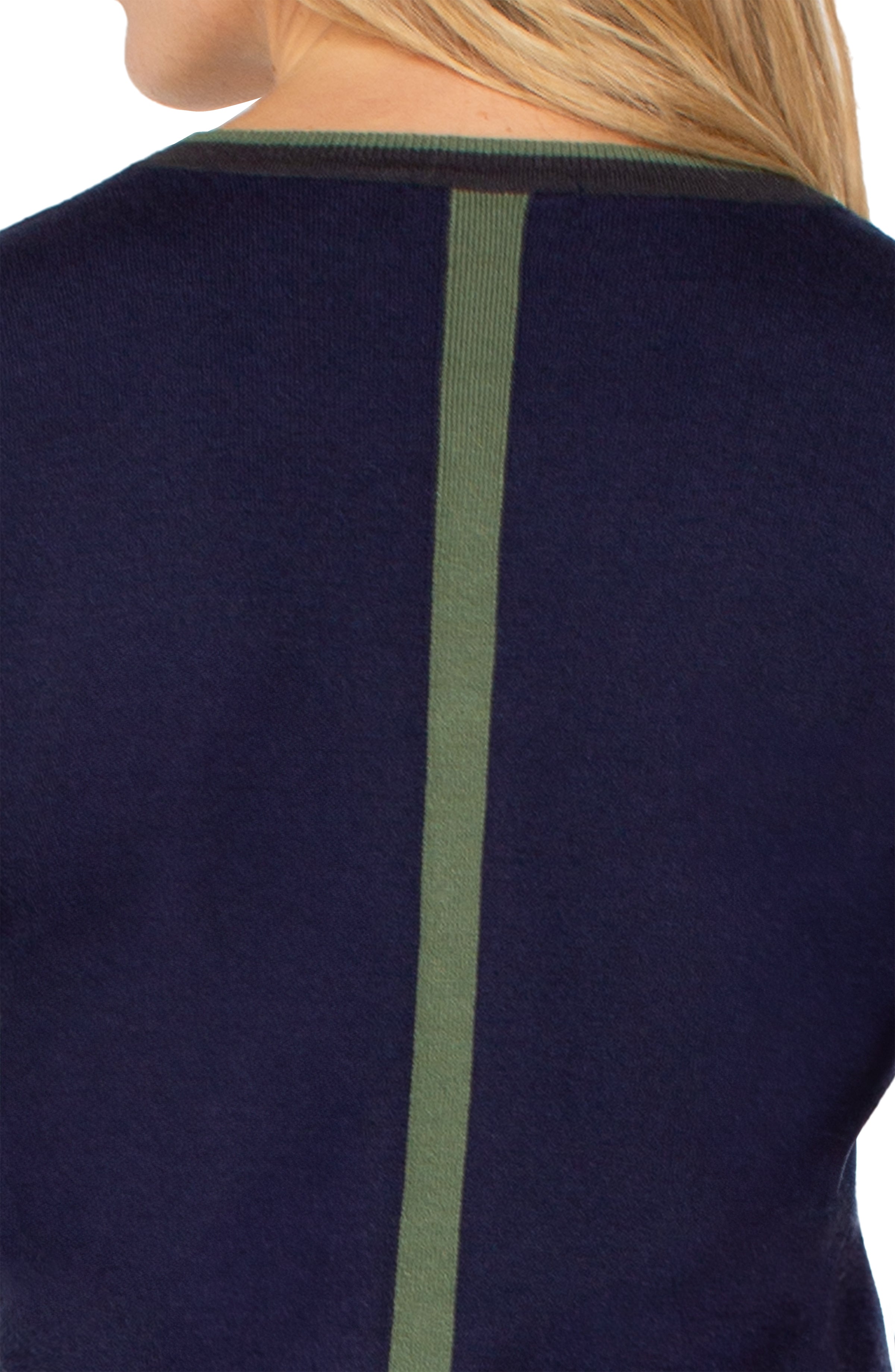 Liverpool Holly Welt Pocket Trouser - Hint Navy Stripe