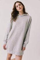 The Aster Heather Grey Hoodie Dress perfectly blends style and comfort with a sporty, playful flair.
