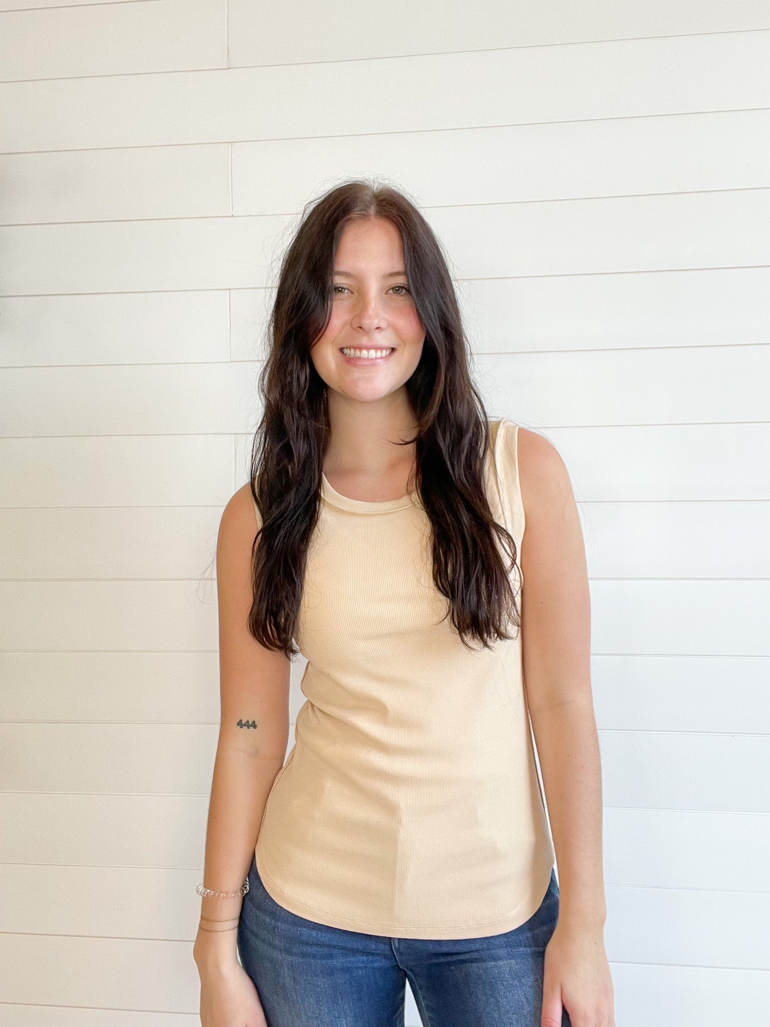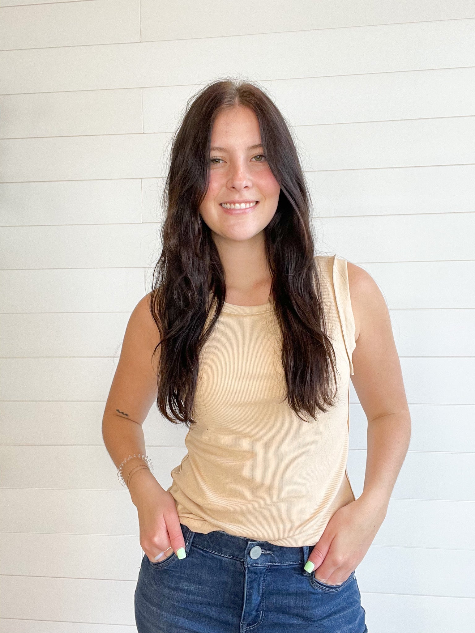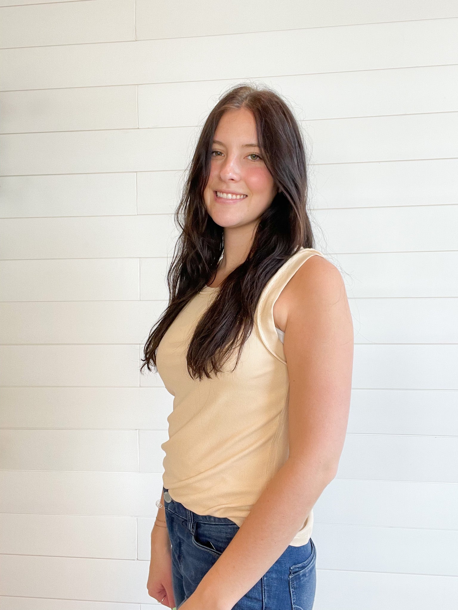 Mac and Me Solid Ribbed Muscle Tank - Biscotti