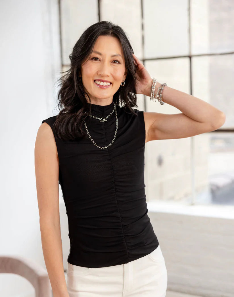 Mac & Me Sheer Mock Neck Tank