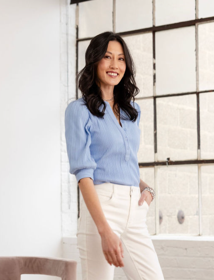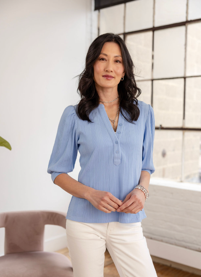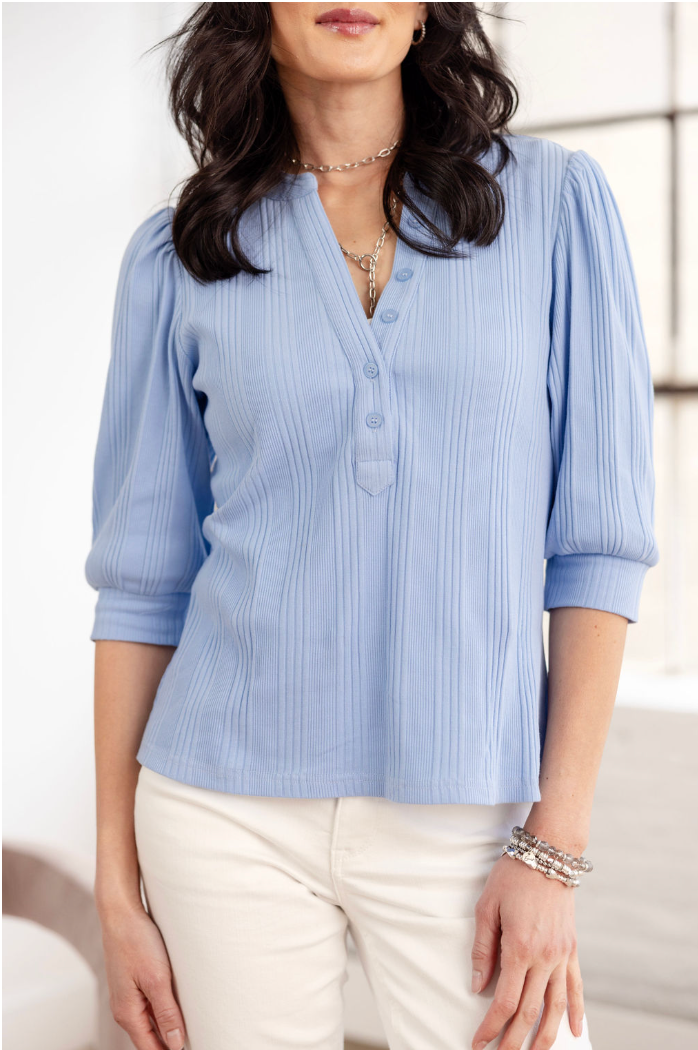 Mac and Me Button Front Elbow Sleeve Top - Halogen Blue