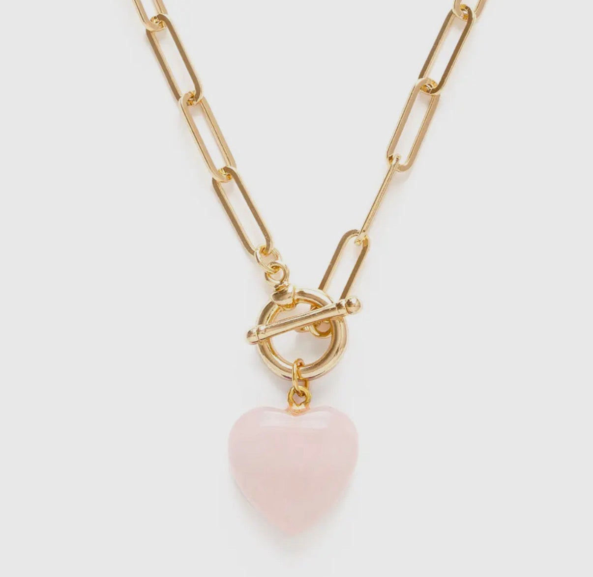 Roxy Chain Toggle Clasp Heart Necklace - Rose Quartz
