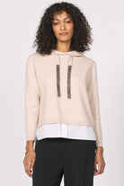 The Shayna long sleeve hoodie features a statement drawstring trim. Its relaxed fit provides all-day comfort in-style. Whether you're lounging at home or stepping out, this hoodie offers a fashionable contrast hem while delivering the utmost coziness and warmth.