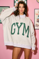 GYM & BED' Print Reversible Mockneck Sweatshirt - Mock-neck - Drop shoulder, long sleeves - Softest cozy fleece - Oversized fit - Rib banded hemline and cuffs - The reversible design lets you switch up your style. 50% Cotton, 50% Polyester.