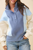 Collared Colorblock Henley Pullover Sweatshirt - Denim