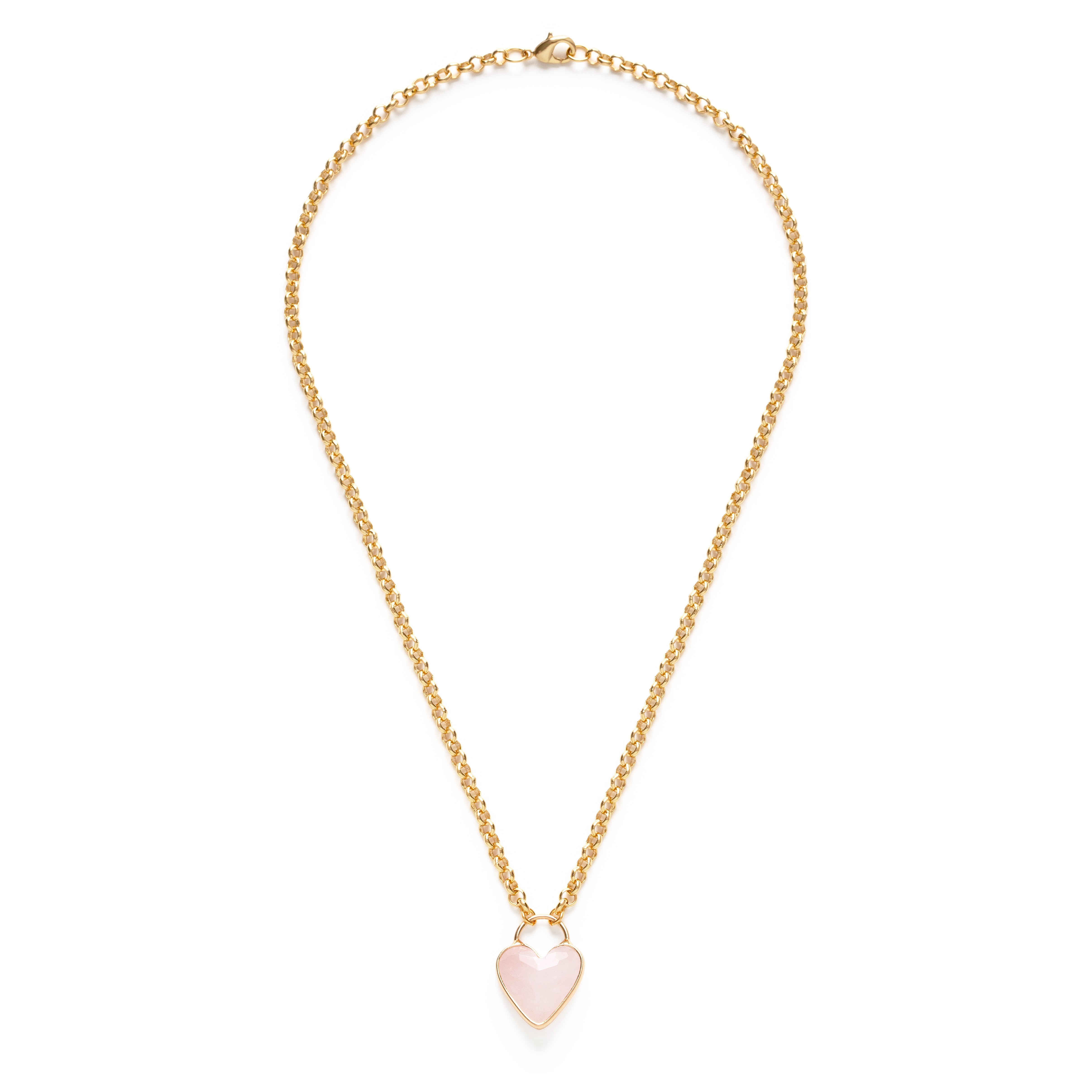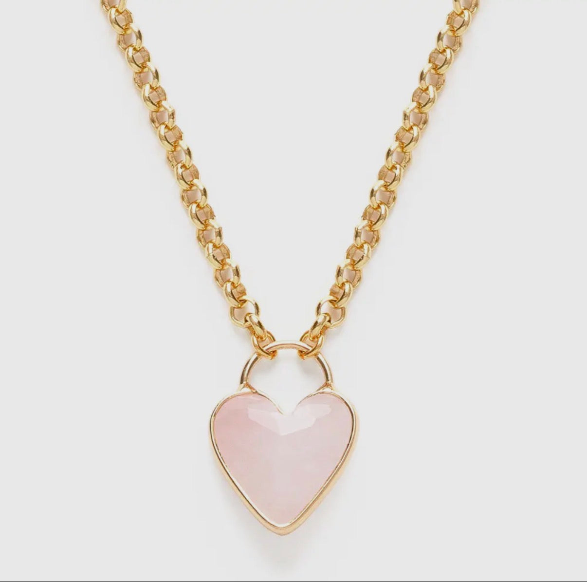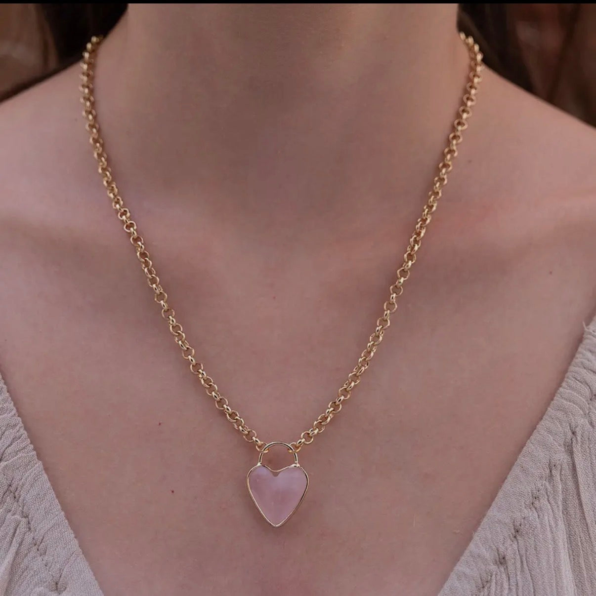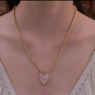 Gemstone Heart Pendant Chunky Chain - Rose Quartz