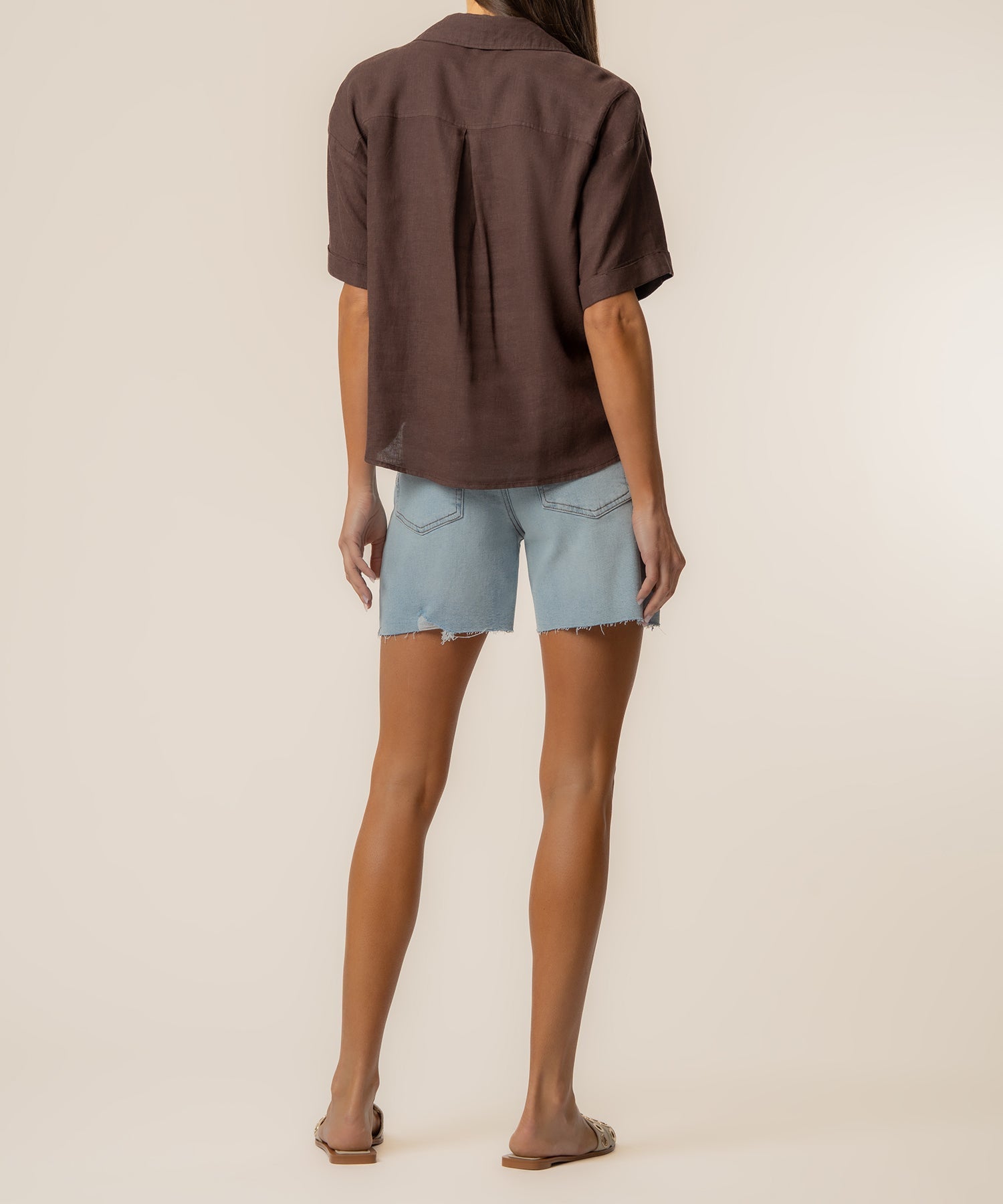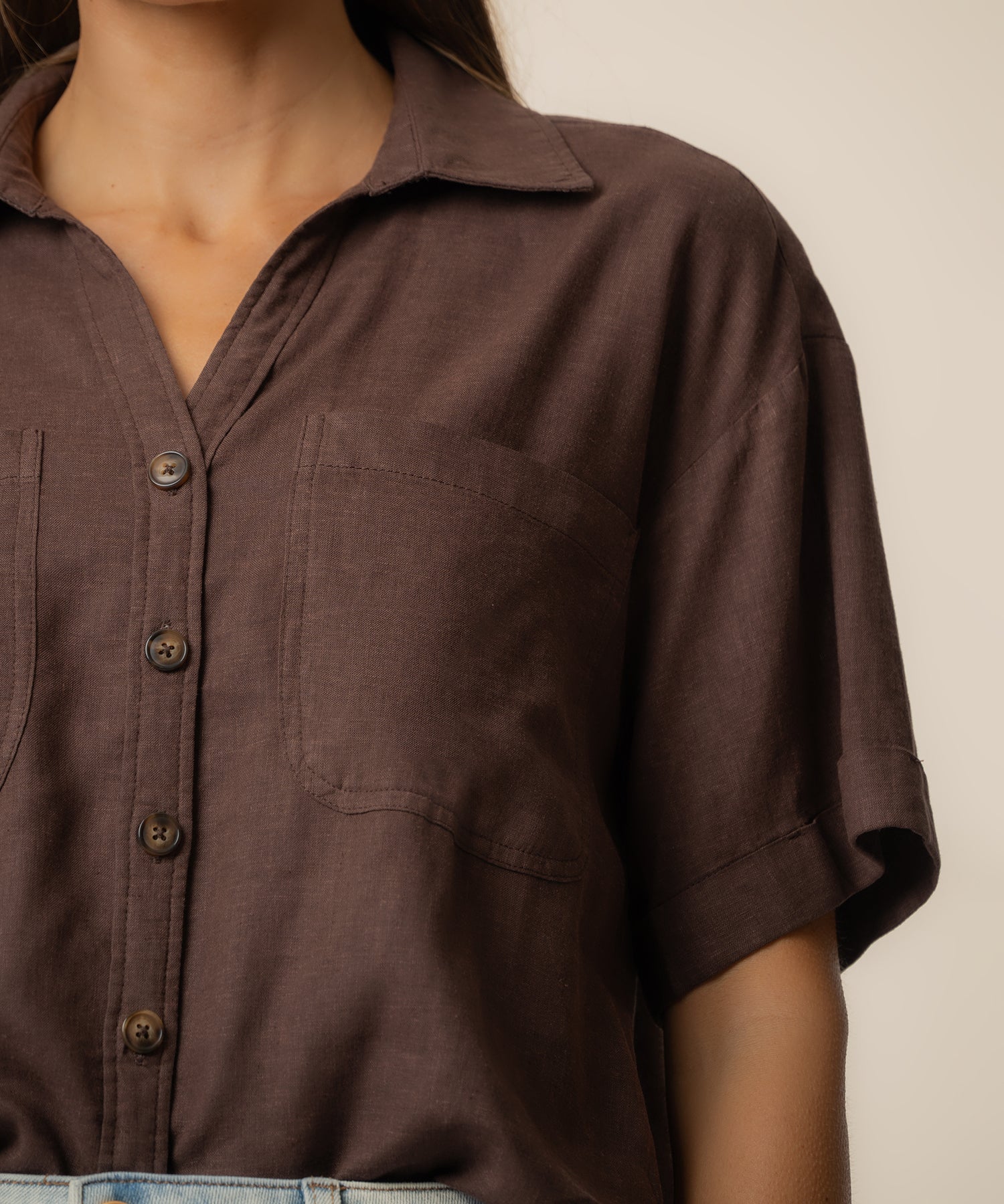 KUT from the Kloth Brianna Boxy Linen Shirt - Chocolate