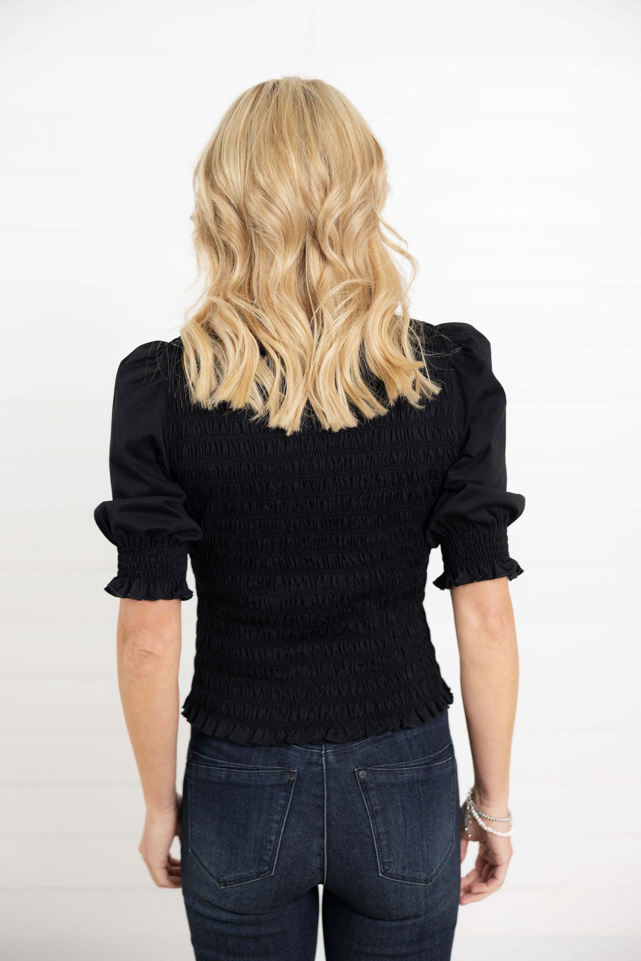 Mac and Me 3/4 Sleeve Smocked Cotton Top - Black