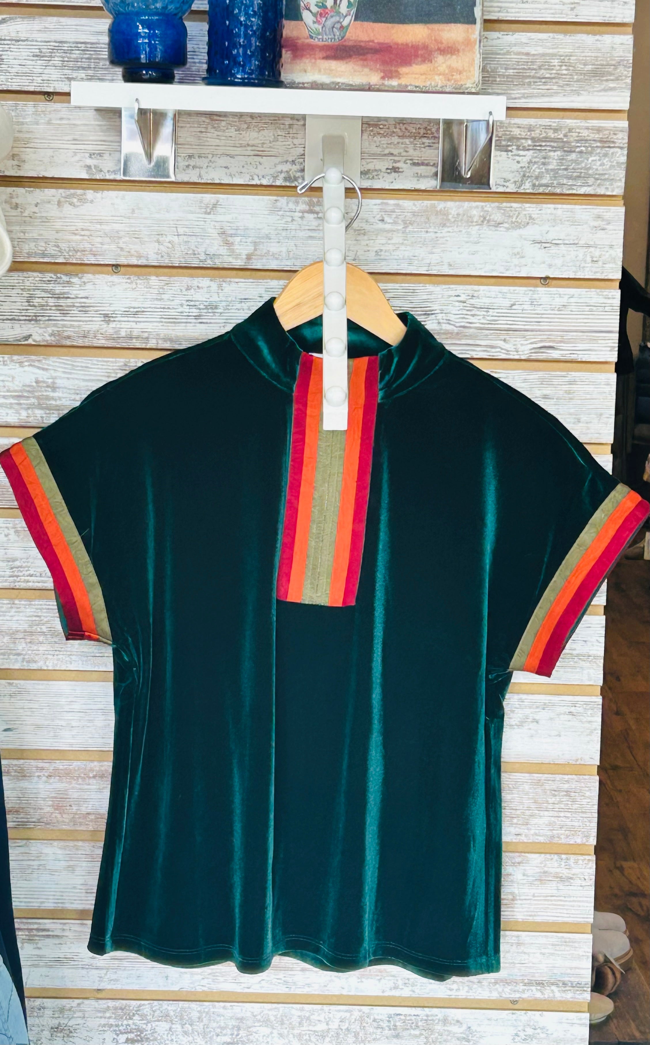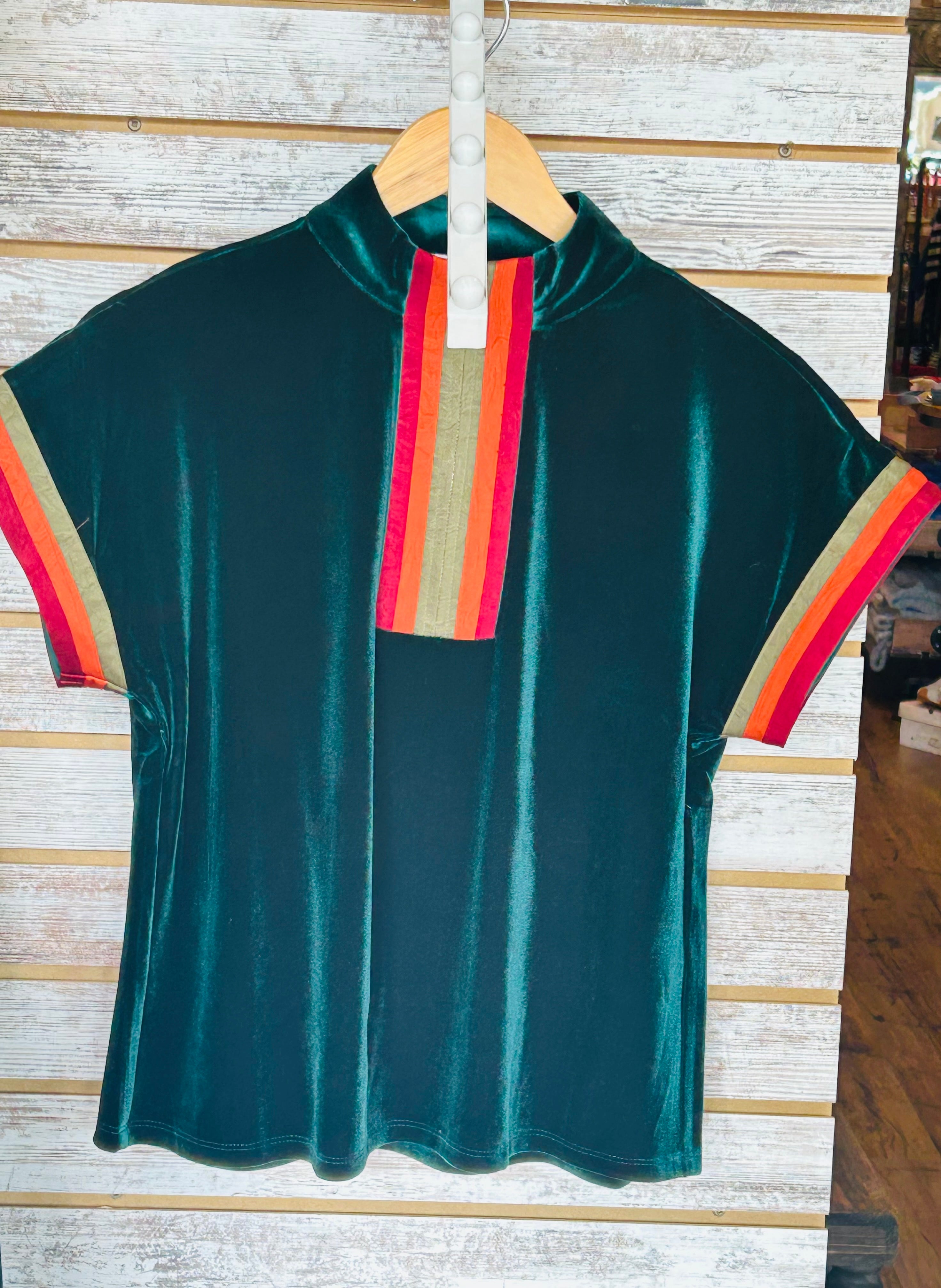 THML SS Half-Zip Contrast Trim Suede Top - Green