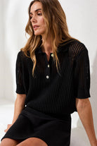 Tribal Open-Stitch Short Sleeve Sweater - Black